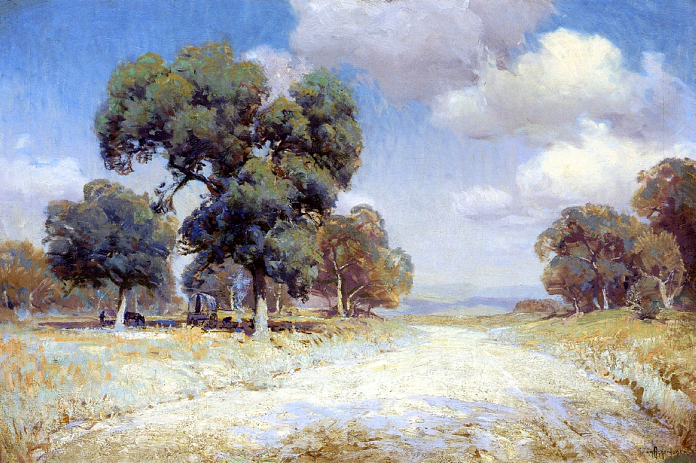 Ti offriamo una riproduzione artigianale su tela dell'opera famosa 'Paesaggio con Wagon' di Robert Julian Onderdonk, dal Museo delle Riproduzioni.