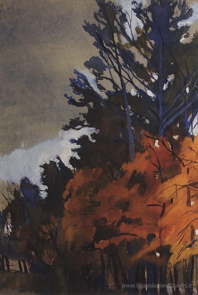 Ti offriamo una riproduzione artigianale su tela dell'opera famosa 'Paesaggio d'autunno' di Zinaida Serebriakova, dal Museo delle Riproduzioni.