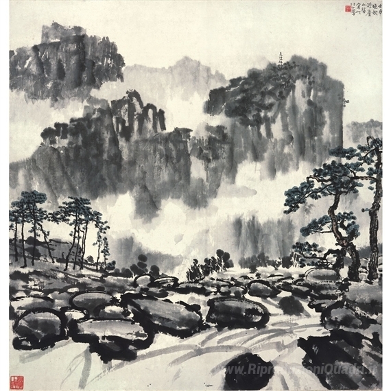 Ti offriamo una riproduzione artigianale su tela dell'opera famosa 'Paesaggio del Monte Lushan' di Xu Beihong, dal Museo delle Riproduzioni.