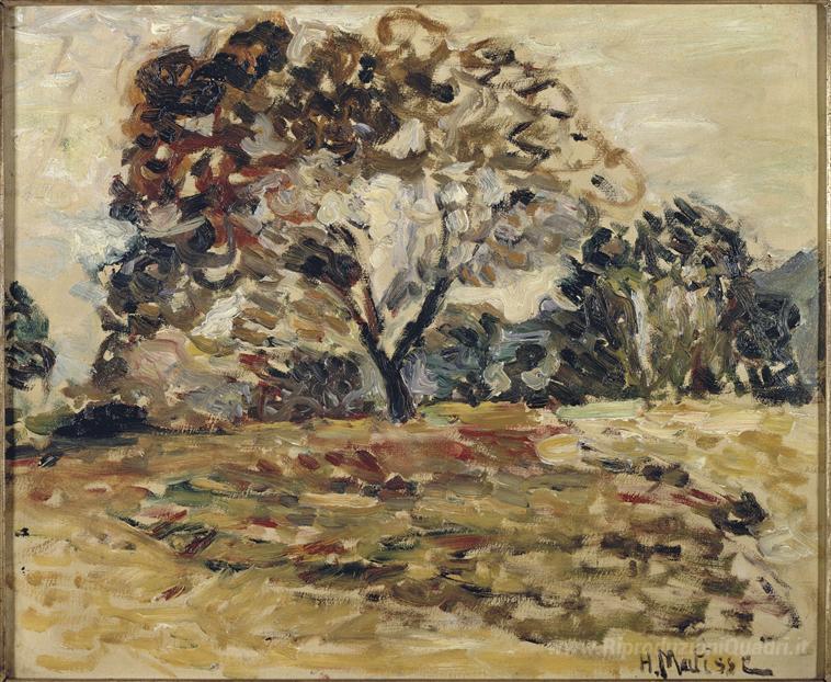 Ti offriamo una riproduzione artigianale su tela dell'opera famosa 'Paesaggio della Corsica' di Henri Matisse, dal Museo delle Riproduzioni.