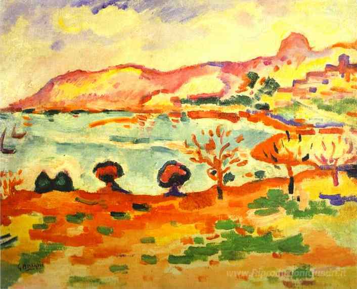 Ti offriamo una riproduzione artigianale su tela dell'opera famosa 'Paesaggio di Estaque' di Georges Braque, dal Museo delle Riproduzioni.