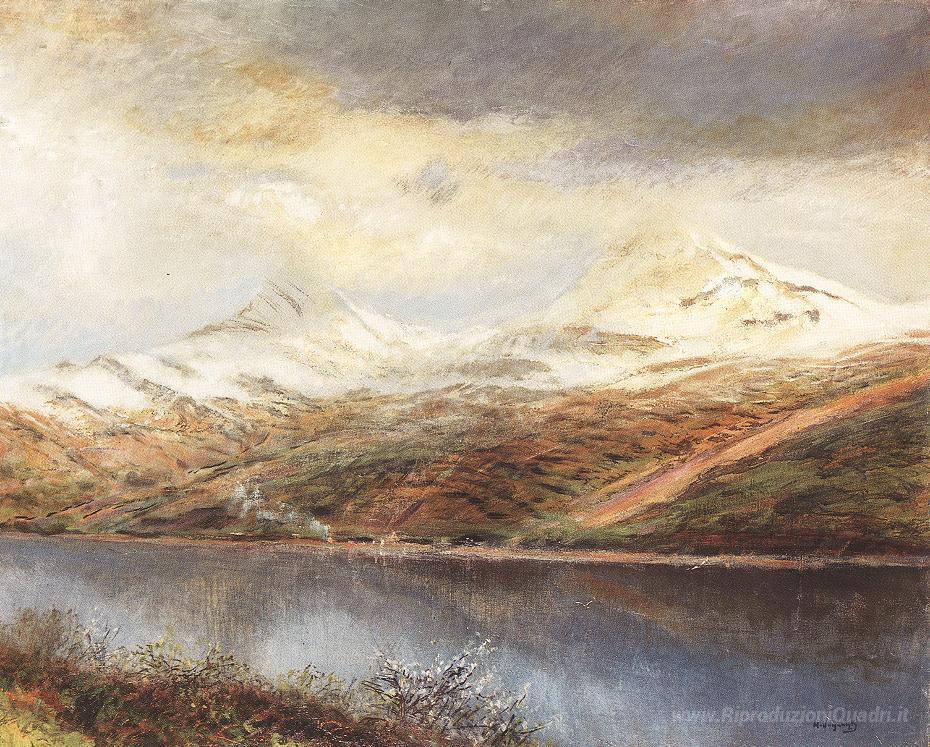Ti offriamo una riproduzione artigianale su tela dell'opera famosa 'Paesaggio di montagna con lago' di Laszlo Mednyanszky, dal Museo delle Riproduzioni.