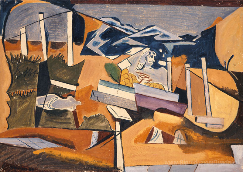 Ti offriamo una riproduzione artigianale su tela dell'opera famosa 'Paesaggio di Olimpia' di Yiannis Tsaroychis, dal Museo delle Riproduzioni.