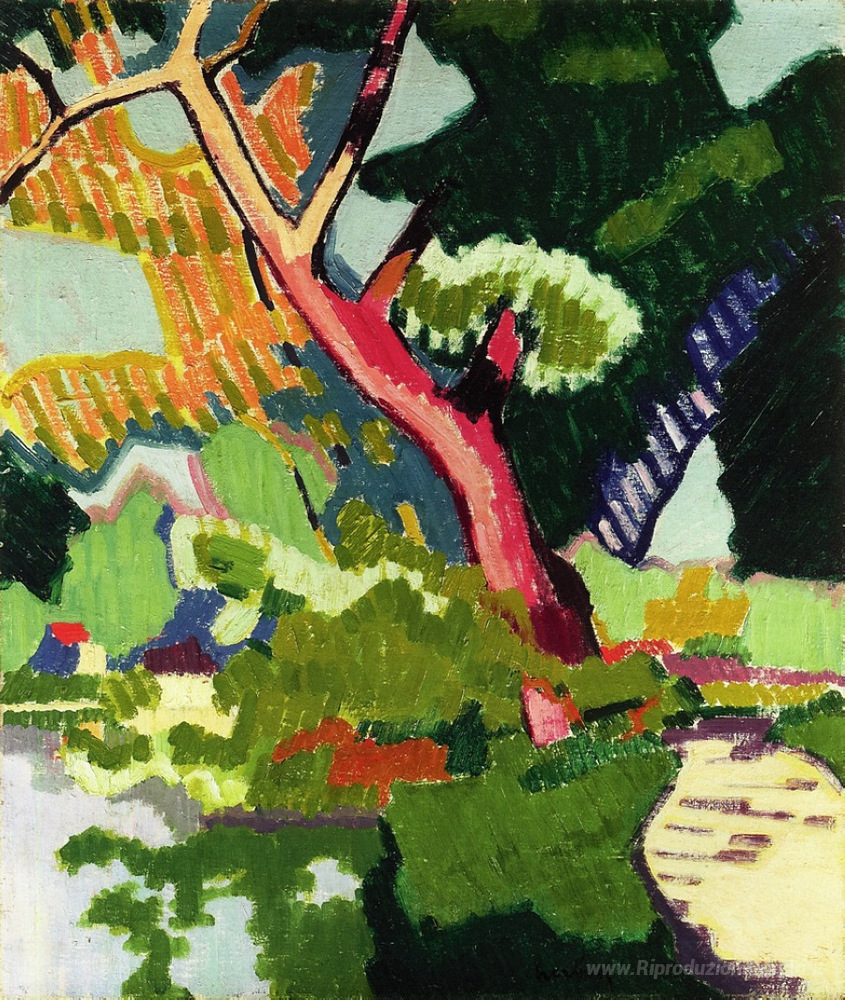 Ti offriamo una riproduzione artigianale su tela dell'opera famosa 'Paesaggio di un corso d'acqua' di Auguste Herbin, dal Museo delle Riproduzioni.