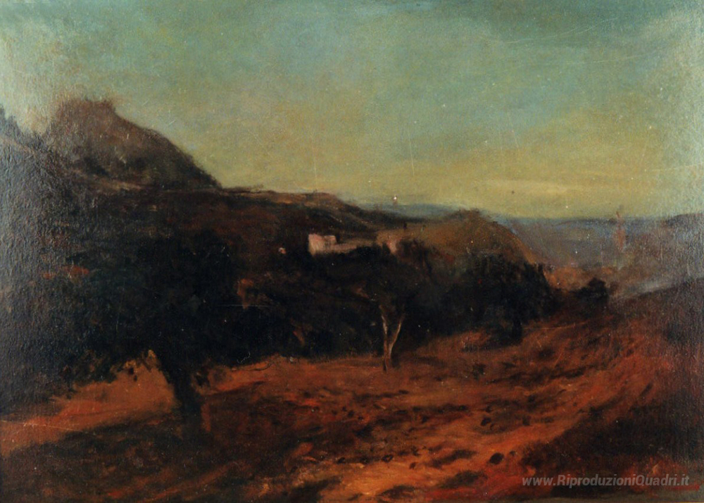 Ti offriamo una riproduzione artigianale su tela dell'opera famosa 'Paesaggio di Xàtiva' di Alejandro Cabeza, dal Museo delle Riproduzioni.