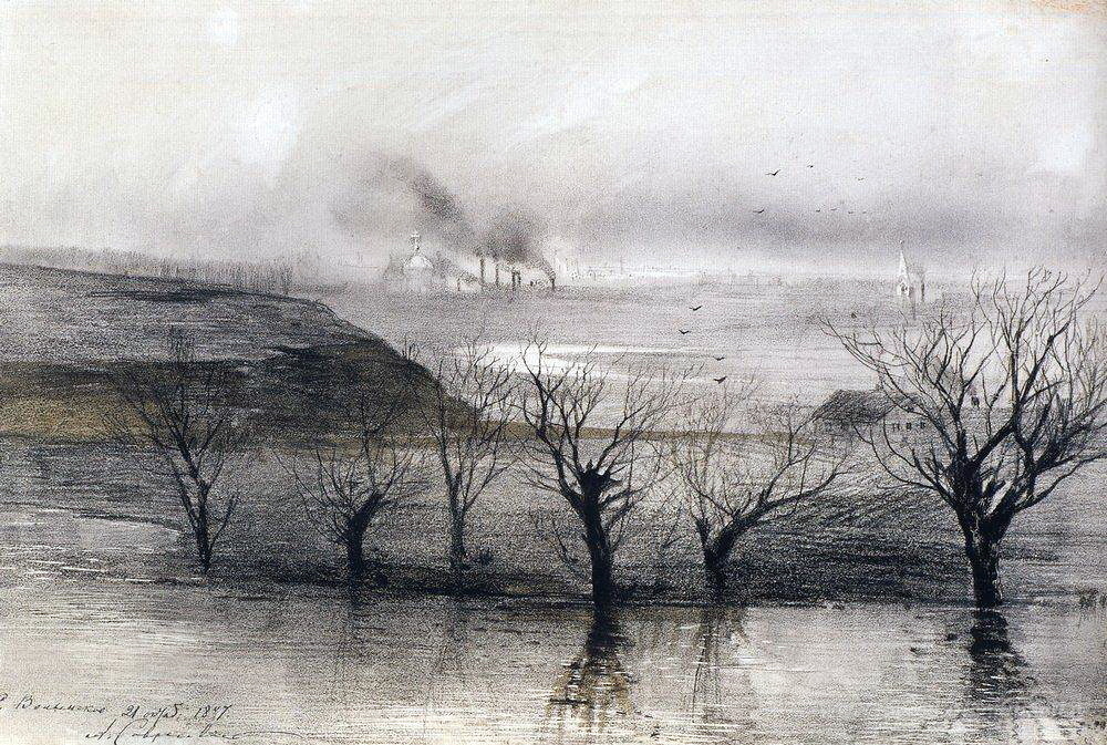 Ti offriamo una riproduzione artigianale su tela dell'opera famosa 'Paesaggio. Il villaggio di Volyn' di Aleksey Savrasov, dal Museo delle Riproduzioni.