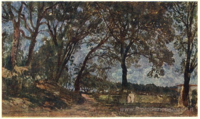 Ti offriamo una riproduzione artigianale su tela dell'opera famosa 'Paesaggio in Albano' di Alexander Ivanov, dal Museo delle Riproduzioni.