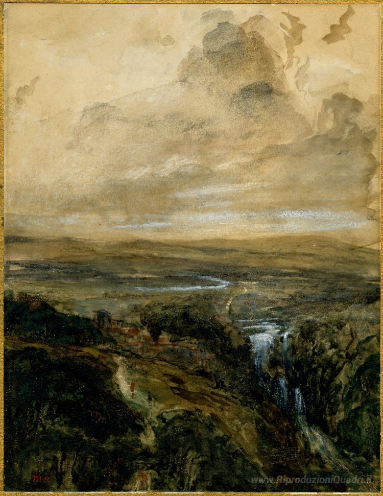 Ti offriamo una riproduzione artigianale su tela dell'opera famosa 'Paesaggio in Alvernia' di Theodore Rousseau, dal Museo delle Riproduzioni.