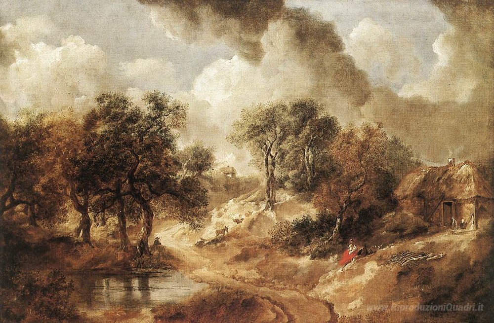 Ti offriamo una riproduzione artigianale su tela dell'opera famosa 'Paesaggio in Suffolk' di Thomas Gainsborough, dal Museo delle Riproduzioni.