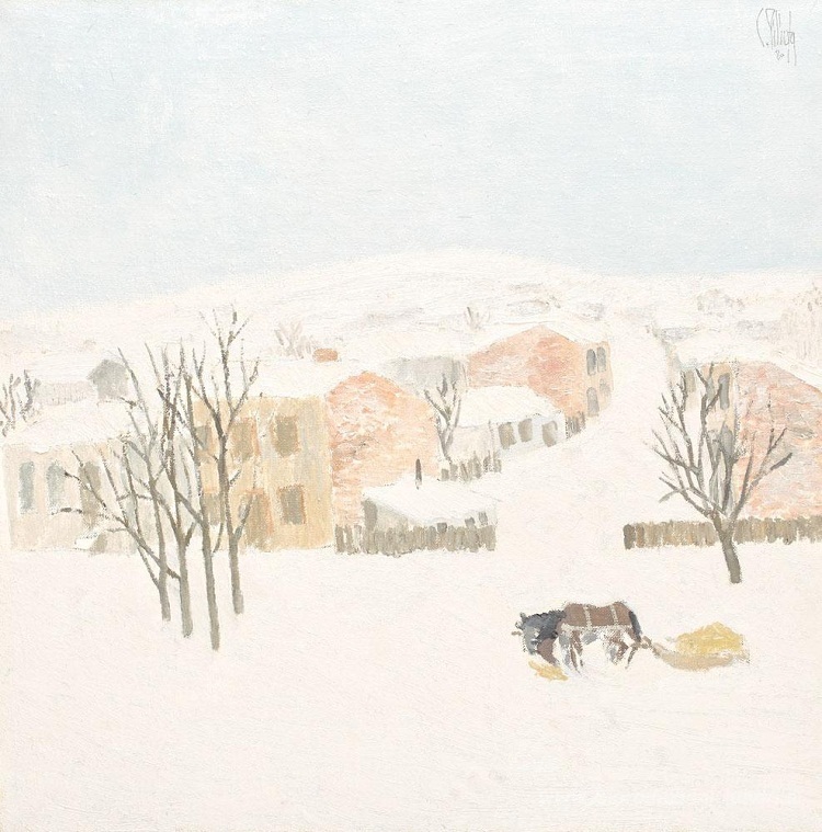 Ti offriamo una riproduzione artigianale su tela dell'opera famosa 'Paesaggio invernale' di Constantin Piliuta, dal Museo delle Riproduzioni.