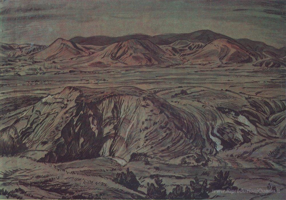 Ti offriamo una riproduzione artigianale su tela dell'opera famosa 'Paesaggio montano' di Konstantin Bogaevsky, dal Museo delle Riproduzioni.