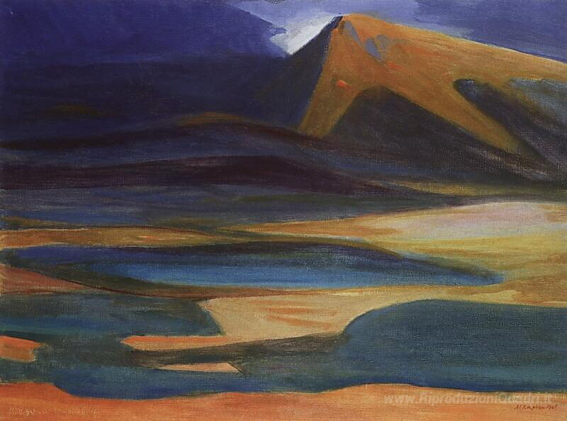 Ti offriamo una riproduzione artigianale su tela dell'opera famosa 'Paesaggio montano' di Martiros Saryan, dal Museo delle Riproduzioni.