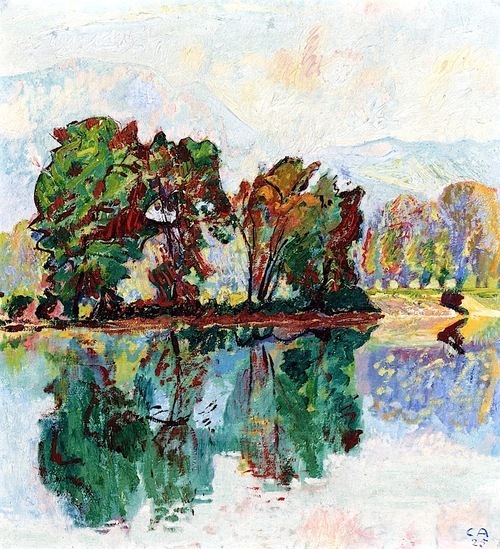 Ti offriamo una riproduzione artigianale su tela dell'opera famosa 'Paesaggio nei pressi del fiume Aare' di Cuno Amiet, dal Museo delle Riproduzioni.