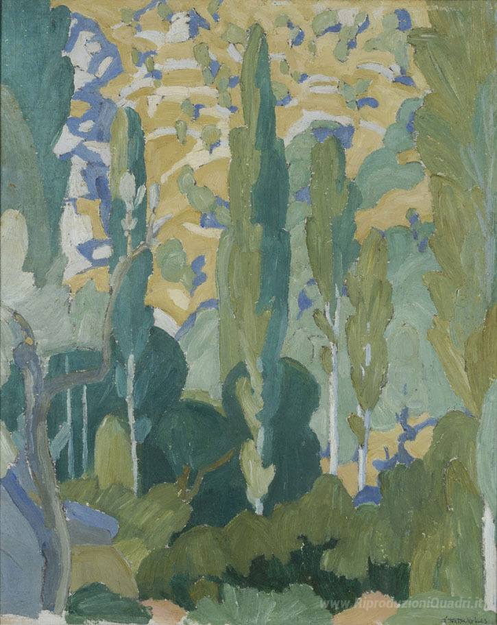 Ti offriamo una riproduzione artigianale su tela dell'opera famosa 'Paesaggio' di Spyros Papaloukas, dal Museo delle Riproduzioni.