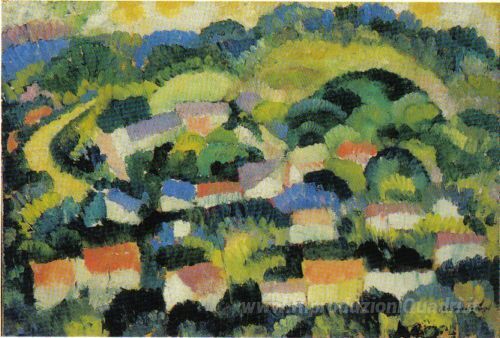 Ti offriamo una riproduzione artigianale su tela dell'opera famosa 'Paesaggio' di Amadeo de Souza-Cardoso, dal Museo delle Riproduzioni.
