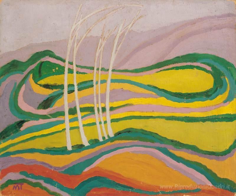 Ti offriamo una riproduzione artigianale su tela dell'opera famosa 'Paesaggio' di Janos Mattis-Teutsch, dal Museo delle Riproduzioni.