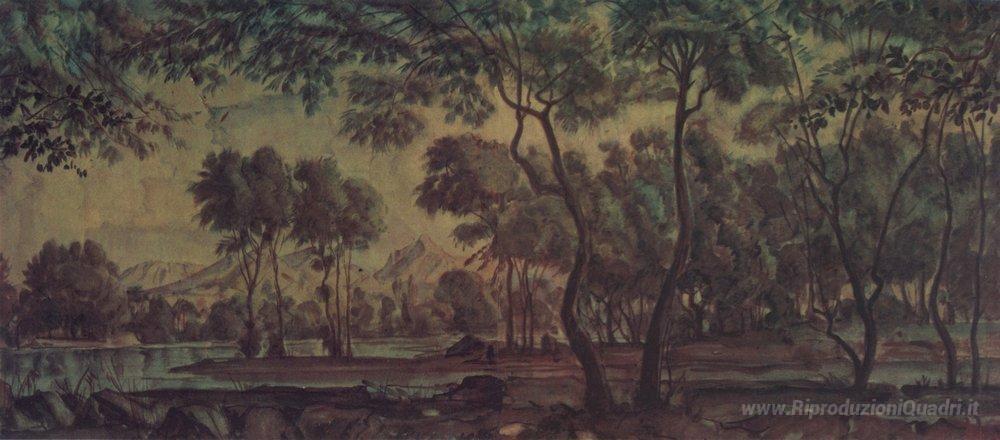 Ti offriamo una riproduzione artigianale su tela dell'opera famosa 'Paesaggio' di Konstantin Bogaevsky, dal Museo delle Riproduzioni.
