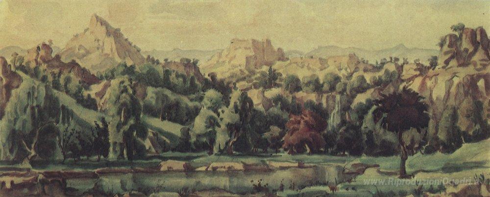 Ti offriamo una riproduzione artigianale su tela dell'opera famosa 'Paesaggio' di Konstantin Bogaevsky, dal Museo delle Riproduzioni.