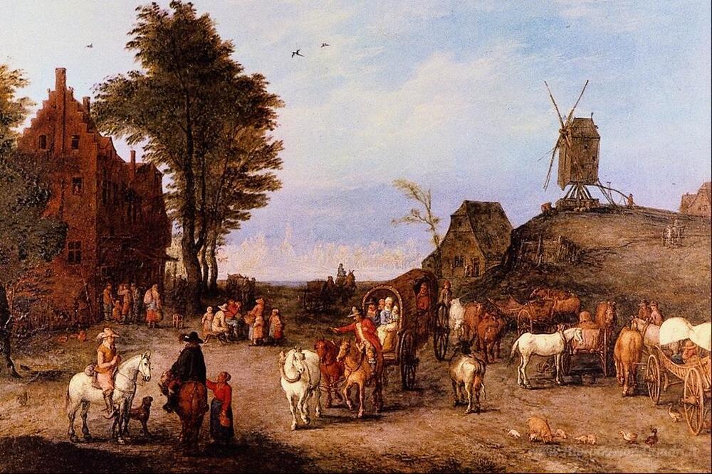 Ti offriamo una riproduzione artigianale su tela dell'opera famosa 'Paesaggio' di Paul Bril, dal Museo delle Riproduzioni.