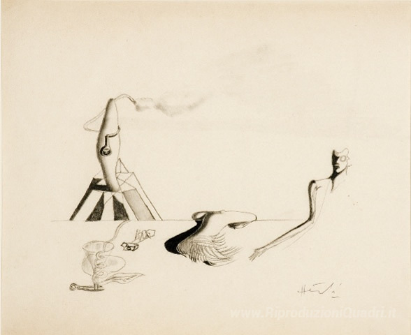 Ti offriamo una riproduzione artigianale su tela dell'opera famosa 'Paesaggio surrealista' di Jacques Hérold, dal Museo delle Riproduzioni.