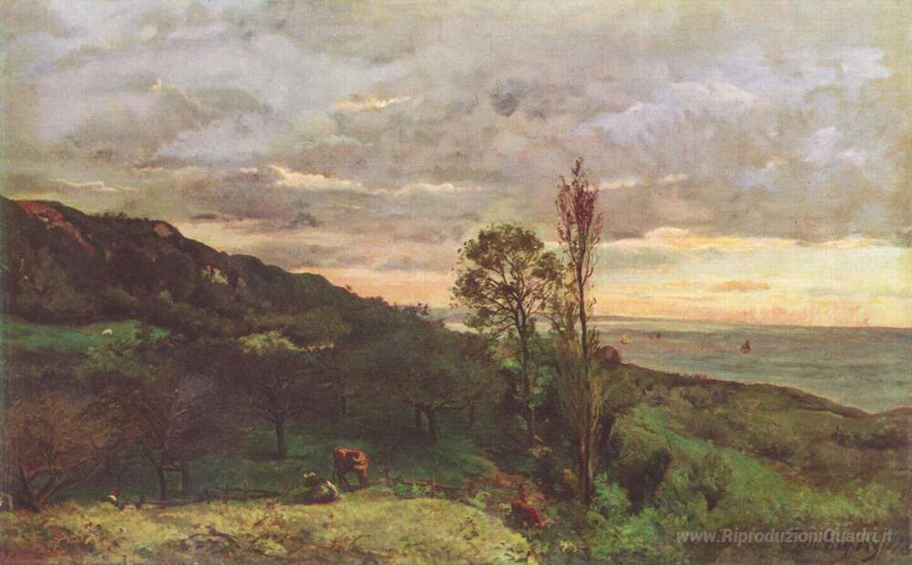Ti offriamo una riproduzione artigianale su tela dell'opera famosa 'Paesaggio vicino Villerville' di Charles-Francois Daubigny, dal Museo delle Riproduzioni.