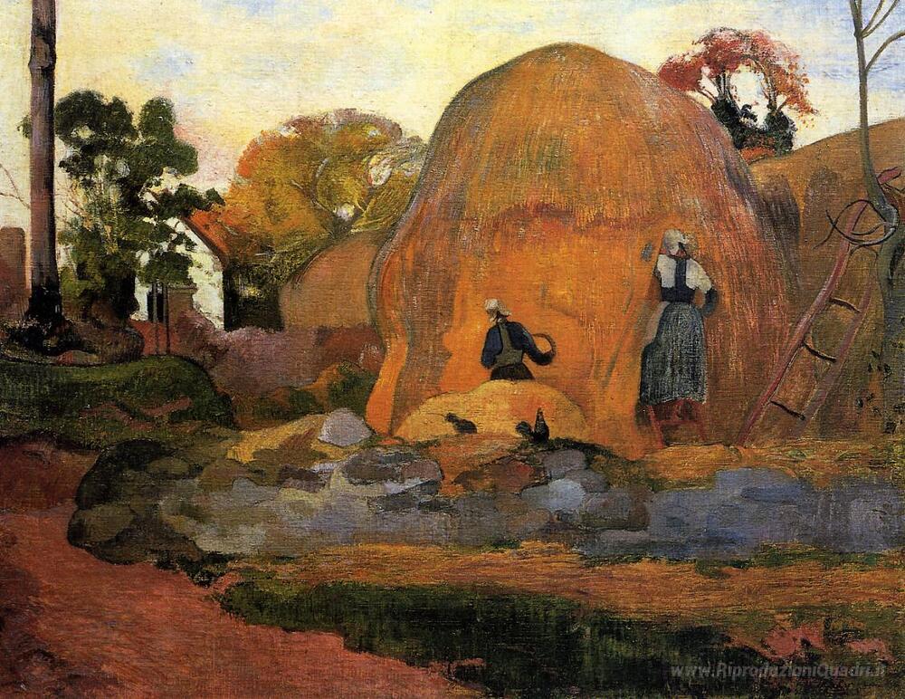 Ti offriamo una riproduzione artigianale su tela dell'opera famosa 'Pagliai gialli (Golden Harvest)' di Paul Gauguin, dal Museo delle Riproduzioni.
