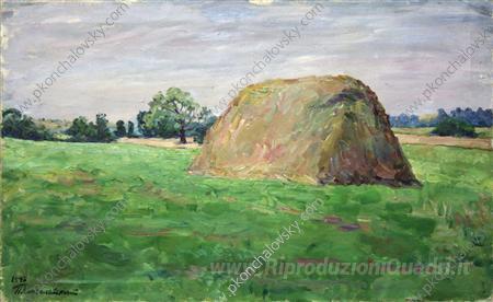 Ti offriamo una riproduzione artigianale su tela dell'opera famosa 'Pagliaio' di Pyotr Konchalovsky, dal Museo delle Riproduzioni.