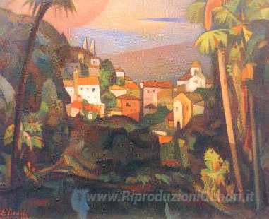 Ti offriamo una riproduzione artigianale su tela dell'opera famosa 'Paisagem de Sintra' di Eduardo Viana, dal Museo delle Riproduzioni.