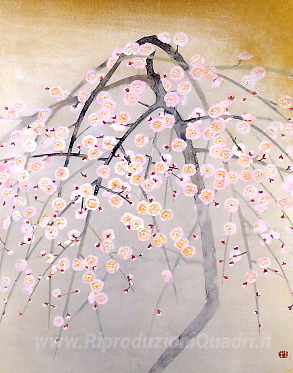Ti offriamo una riproduzione artigianale su tela dell'opera famosa 'Pallido Plum Tree' di Togyu Okumura, dal Museo delle Riproduzioni.