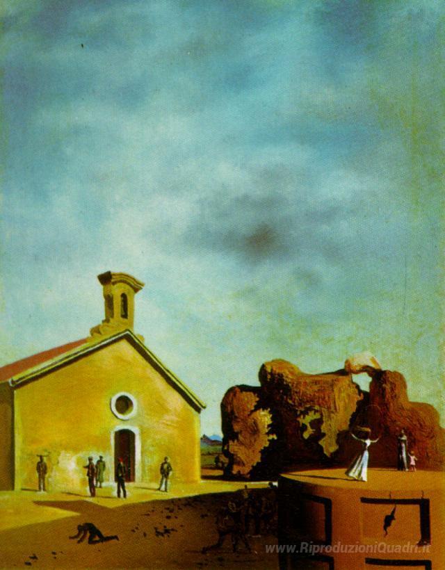 Ti offriamo una riproduzione artigianale su tela dell'opera famosa 'Pane sul capo del figliol prodigo' di Salvador Dali, dal Museo delle Riproduzioni.