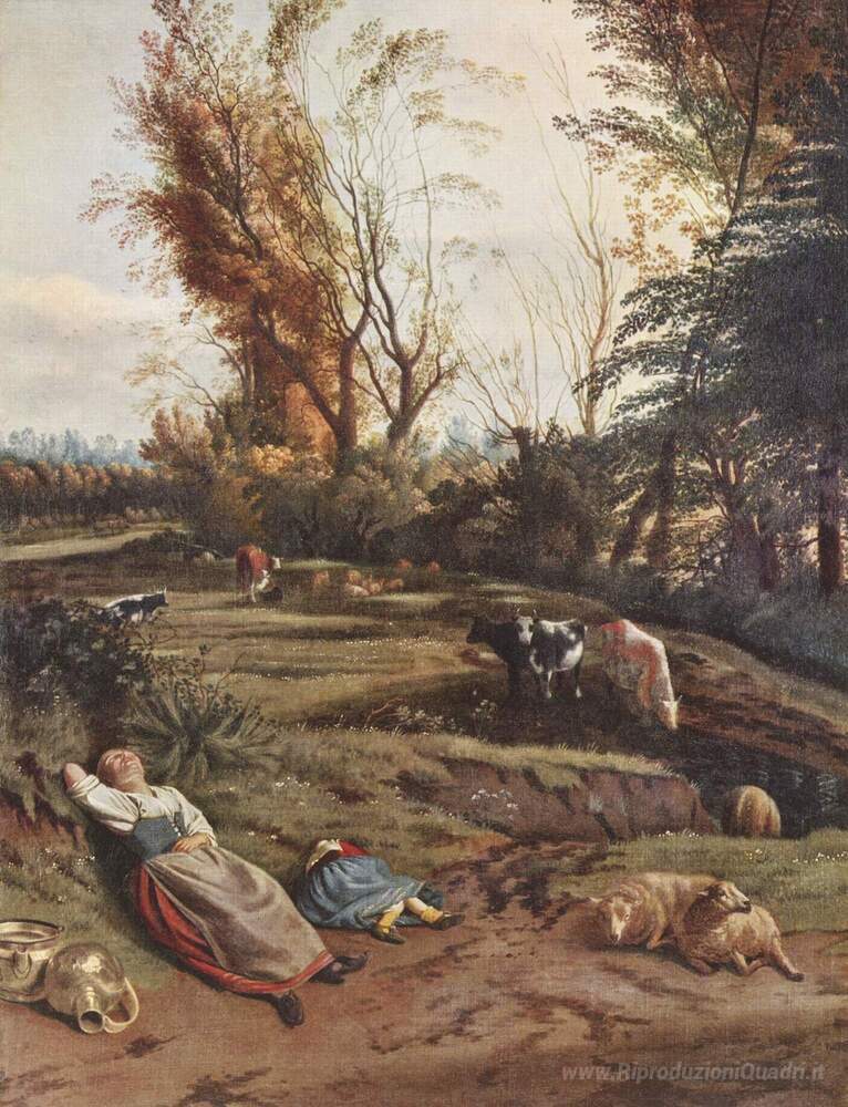 Ti offriamo una riproduzione artigianale su tela dell'opera famosa 'Pascolo con due Pastore a pelo' di Jan Siberechts, dal Museo delle Riproduzioni.