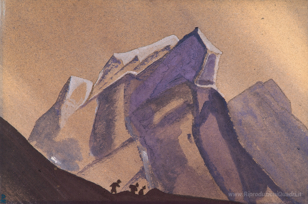 Ti offriamo una riproduzione artigianale su tela dell'opera famosa 'Passare. Tempesta. Percorso segreto.' di Nicholas Roerich, dal Museo delle Riproduzioni.