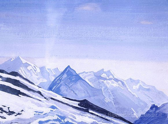 Ti offriamo una riproduzione artigianale su tela dell'opera famosa 'Passo Rohtang' di Nicholas Roerich, dal Museo delle Riproduzioni.