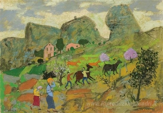 Ti offriamo una riproduzione artigianale su tela dell'opera famosa 'Pastori della valle' di Grégoire Michonze, dal Museo delle Riproduzioni.