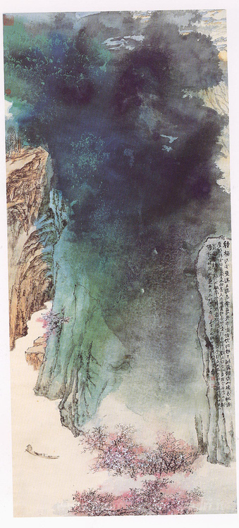 Ti offriamo una riproduzione artigianale su tela dell'opera famosa 'Peach Blossom Primavera' di Chang Dai-chien, dal Museo delle Riproduzioni.