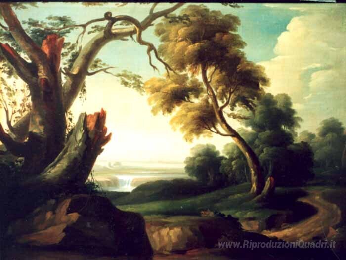 Ti offriamo una riproduzione artigianale su tela dell'opera famosa 'Peisaj cu arbore Frant' di Gheorghe Tattarescu, dal Museo delle Riproduzioni.