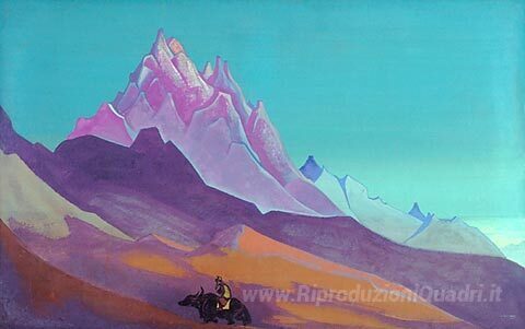 Ti offriamo una riproduzione artigianale su tela dell'opera famosa 'Pellegrino' di Nicholas Roerich, dal Museo delle Riproduzioni.