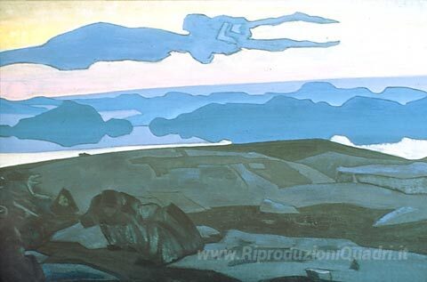 Ti offriamo una riproduzione artigianale su tela dell'opera famosa 'Pensare' di Nicholas Roerich, dal Museo delle Riproduzioni.