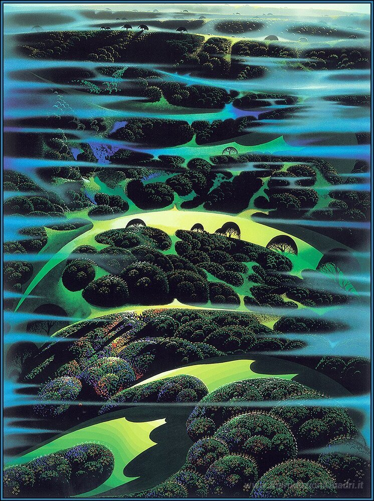 Benvenuti nel nostro esclusivo angolo dedicato ai dipinti a olio italiani, dove ogni opera racconta una storia unica e incantevole. Oggi vi presentiamo l'impareggiabile Eyvind Earle, un artista la cui abilità nel padroneggiare i colori e le forme ha lasciato un'impronta indelebile nella storia dell'arte. Il suo capolavoro "Per quanto ho potuto vedere" è un perfetto esempio del suo stile distintivo, caratterizzato da paesaggi onirici e dettagli mozzafiato, che evocano emozioni profonde e riflessioni serene.