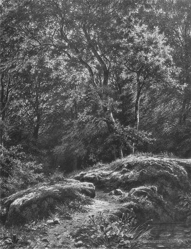 Ti offriamo una riproduzione artigianale su tela dell'opera famosa 'Percorso nella foresta' di Ivan Shishkin, dal Museo delle Riproduzioni.