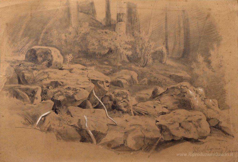 Ti offriamo una riproduzione artigianale su tela dell'opera famosa 'Pietre' di Ivan Shishkin, dal Museo delle Riproduzioni.