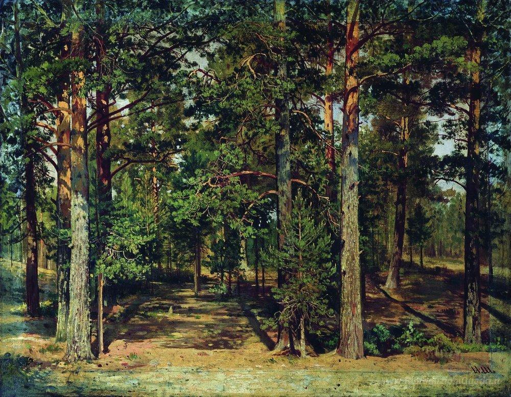 Ti offriamo una riproduzione artigianale su tela dell'opera famosa 'pineta' di Ivan Shishkin, dal Museo delle Riproduzioni.
