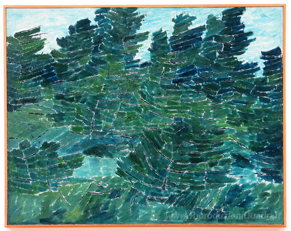 Ti offriamo una riproduzione artigianale su tela dell'opera famosa 'Pineta' di Kazuo Nakamura, dal Museo delle Riproduzioni.