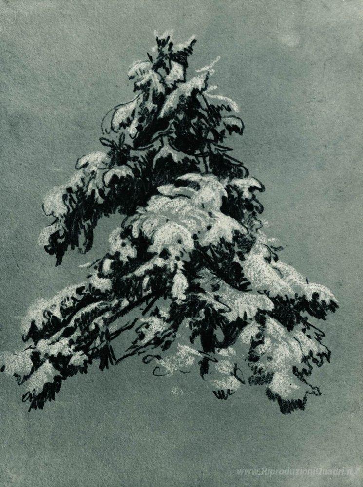 Ti offriamo una riproduzione artigianale su tela dell'opera famosa 'Pino nella neve' di Ivan Shishkin, dal Museo delle Riproduzioni.
