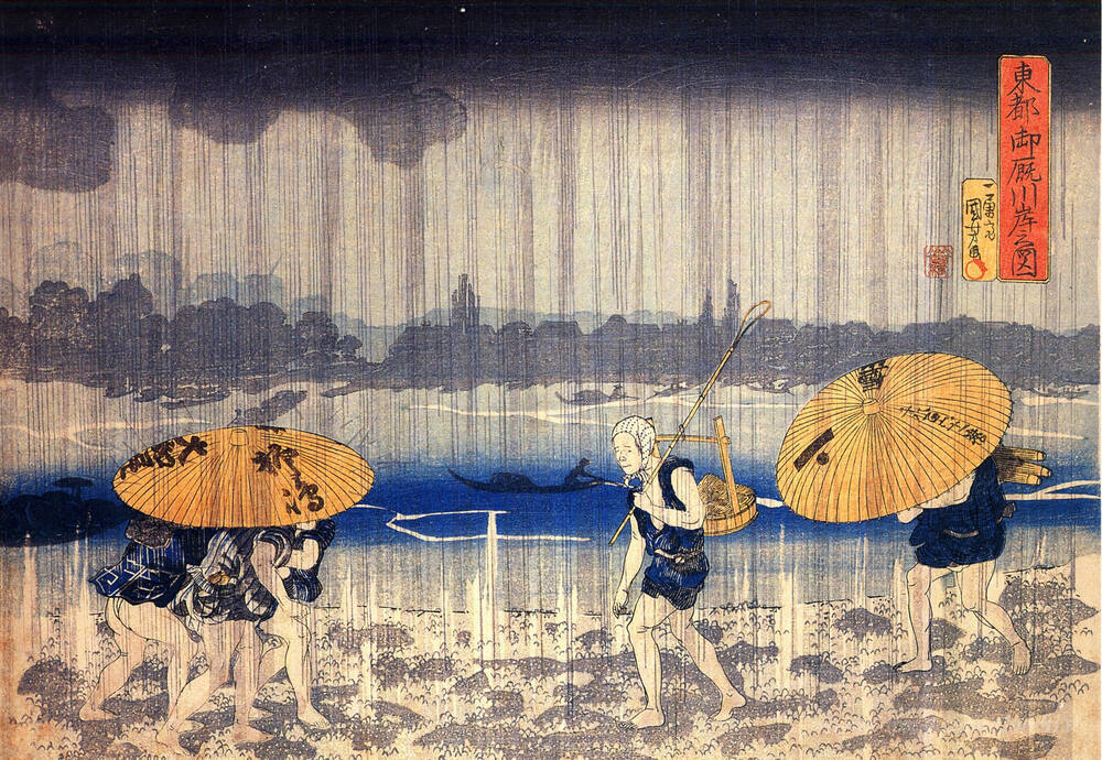 Ti offriamo una riproduzione artigianale su tela dell'opera famosa 'Pioggia a dirotto' di Utagawa Kuniyoshi, dal Museo delle Riproduzioni.