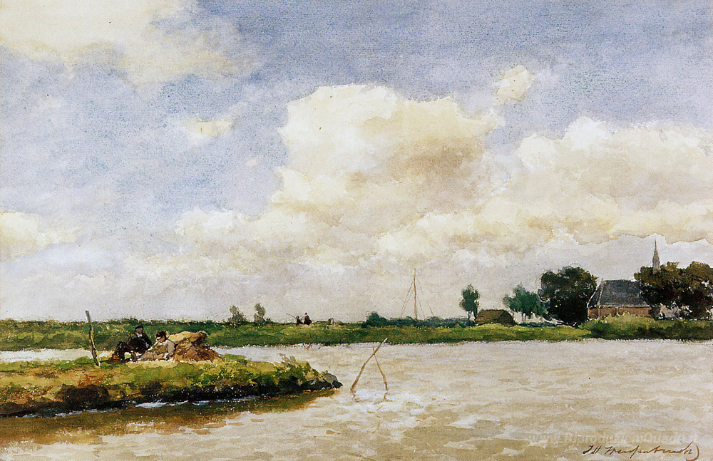 Ti offriamo una riproduzione artigianale su tela dell'opera famosa 'Polder a Noorden' di Johan Hendrik Weissenbruch, dal Museo delle Riproduzioni.