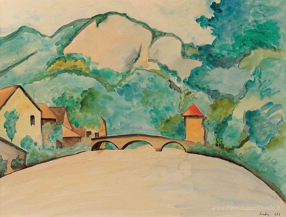 Ti offriamo una riproduzione artigianale su tela dell'opera famosa 'Pont sur la Loue à Moutier' di Auguste Herbin, dal Museo delle Riproduzioni.