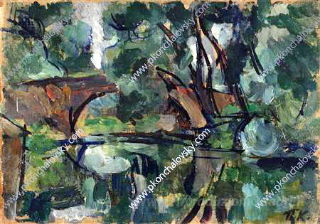 Ti offriamo una riproduzione artigianale su tela dell'opera famosa 'Ponte' di Pyotr Konchalovsky, dal Museo delle Riproduzioni.
