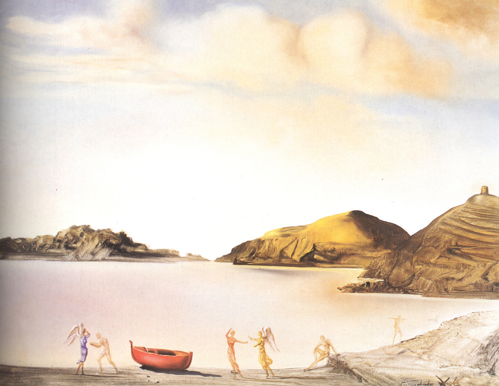 Ti offriamo una riproduzione artigianale su tela dell'opera famosa 'Port Lligat at Sunset' di Salvador Dali, dal Museo delle Riproduzioni.
