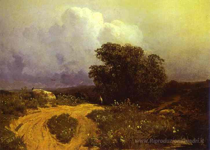 Ti offriamo una riproduzione artigianale su tela dell'opera famosa 'Prima di un temporale' di Fyodor Vasilyev, dal Museo delle Riproduzioni.
